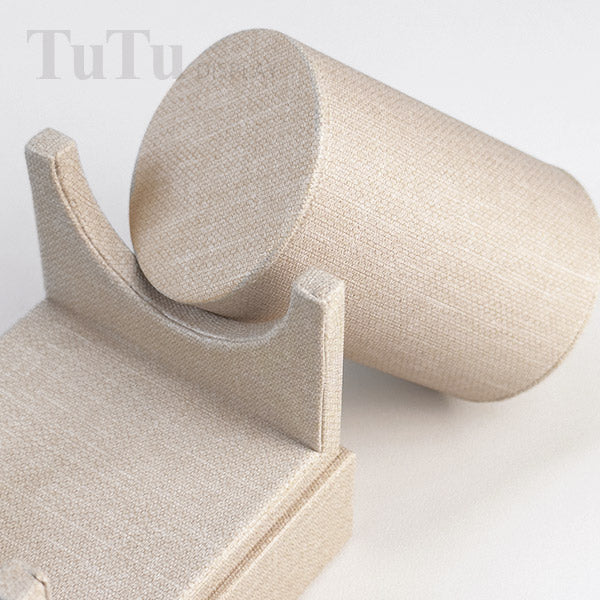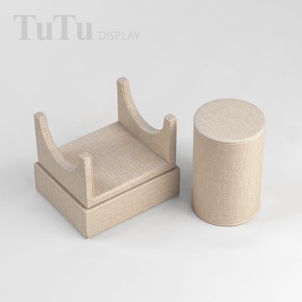 BH087 is a high quality jewellery display holder for bangle. It is made of very nice PU leather in linen texture beige color. The product is available for custom made.