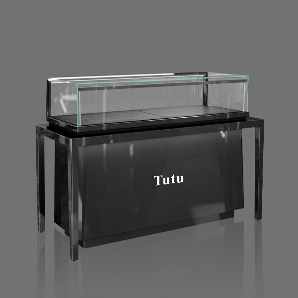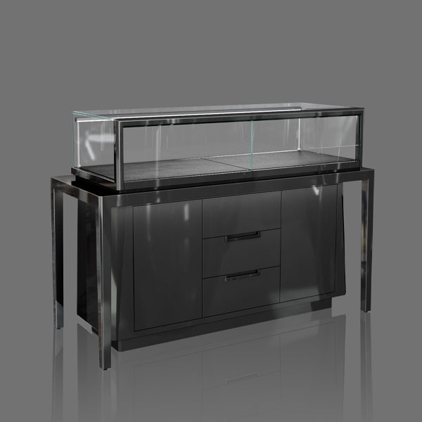 DM124 is a high end and luxury display counter in black finish for displaying watches. The product size is: W1524mm*D610mm*H1067mm. The detail infomation as below:
