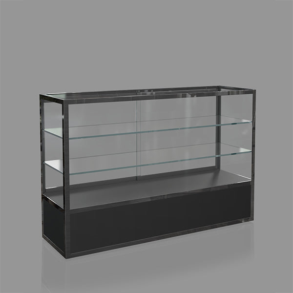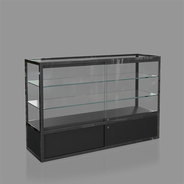 DM138 is a black lighted jewelry display counter with 3 tiers with glass shelves and sliding door. The product size is: W1500mm×D450mm×H1000mm. The detail infomation as below: