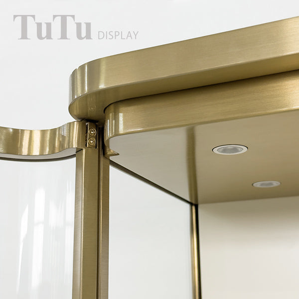 DM253 is a wall mounted display cabinet with LED spot lights on top, glass swing door with metal frame, matte white display space of base and back board. The product is available for custom made.