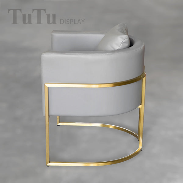 DM274 is made of grey PU leather and stainless steel brushed gold finish for Leg Frame.