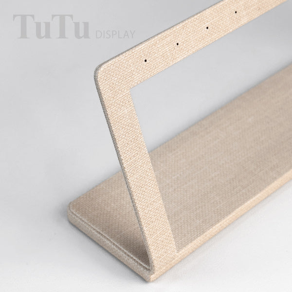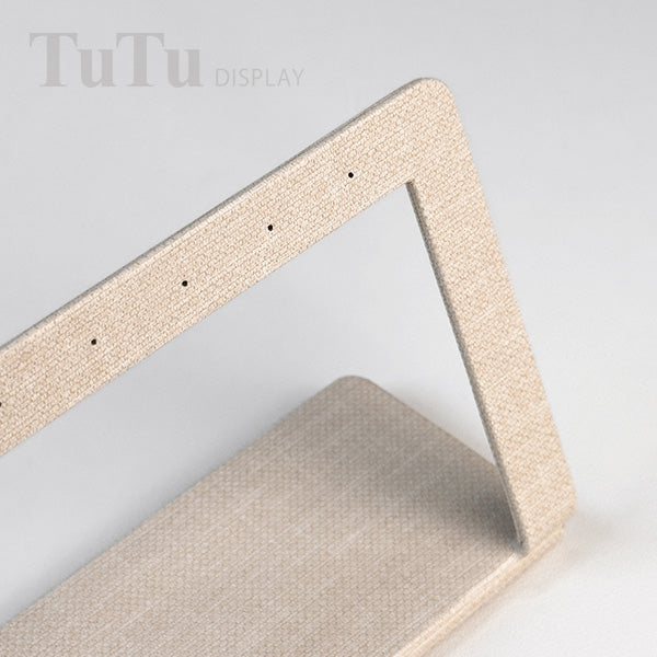 EH084 is a high quality jewellery display rack holder for earring. It is made of very nice PU leather in linen texture beige color. The product is available for custom made.