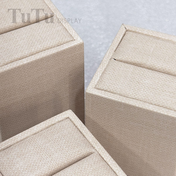 RH094 is a high quality jewellery display holder for ring. It is made of very nice PU leather in linen texture beige color. The product is available for custom made.