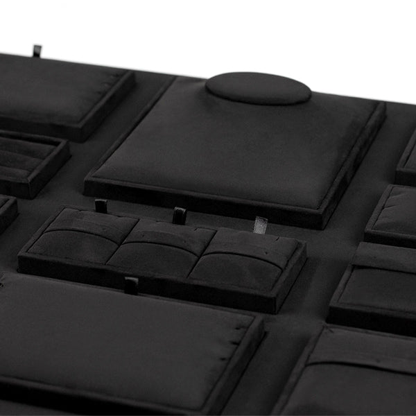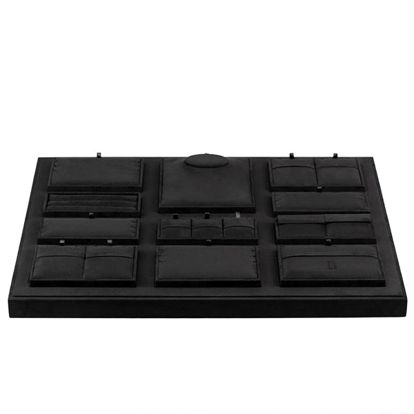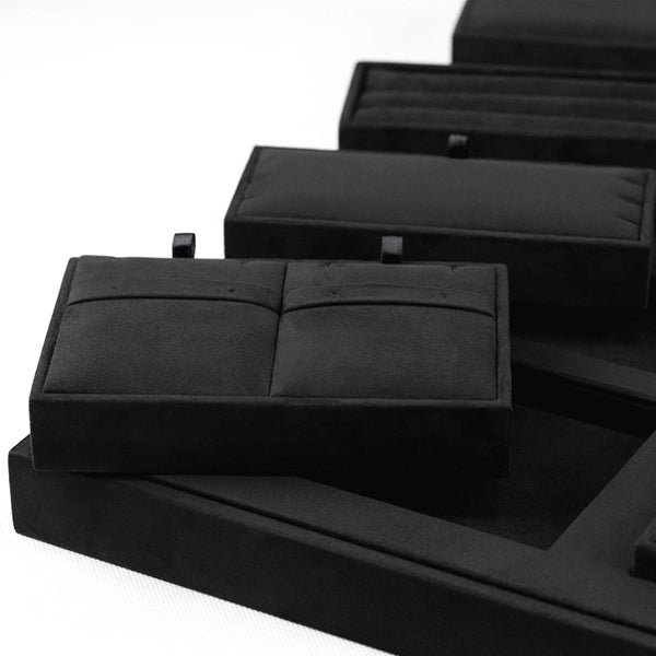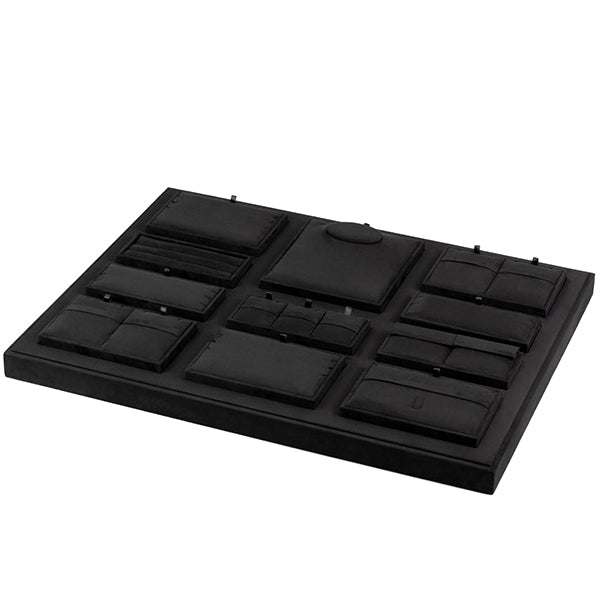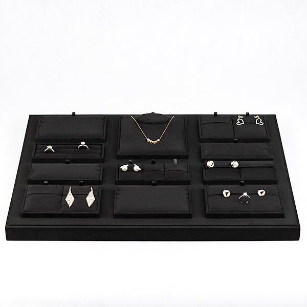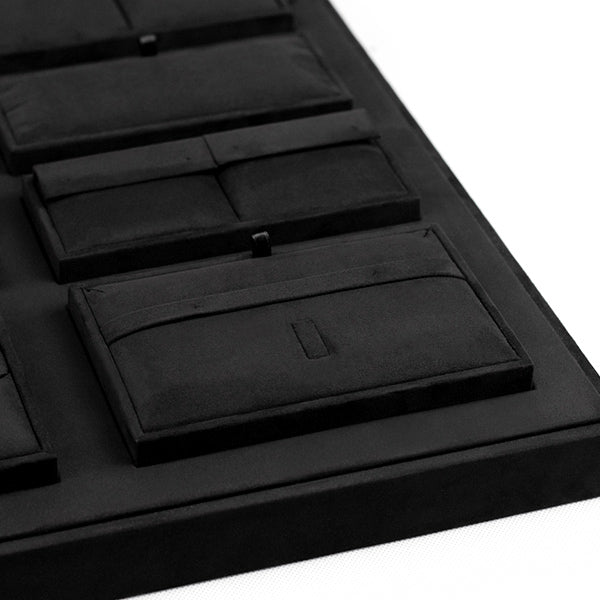 TR0046 is a high quality retail jewelry display tray for displaying necklace, bracelet, earring, ring and etc. It is made of very nice micro fiber fabric in black color. The product is available for custom made.