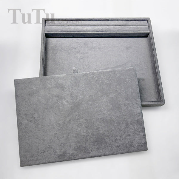 This serving tray is made of micro fiber in grey color. Available for custom made.